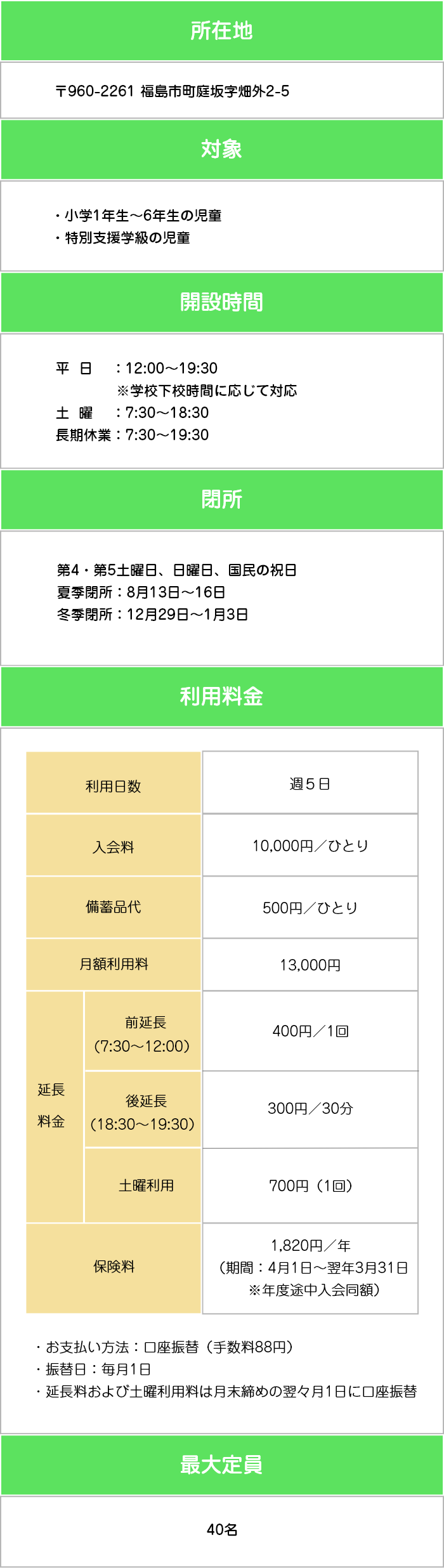 ※学童の空き状況により、年度途中の受け入れも可能です。定員を超えている場合は待機となります。